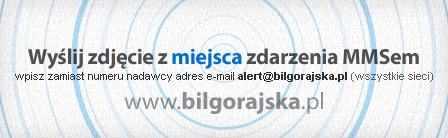 Utwórz wiadomość MMS i wyślij na adres alert@bilgorajska.pl