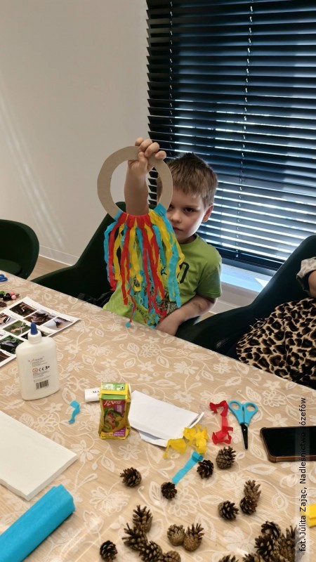 Nie zabrakło także części kreatywnej. Wspólnie wykonywano łapacze snów inspirowane naturą. Powstały barwne prace, a zajęciom towarzyszyło mnóstwo śmiechu i dobrej zabawy.