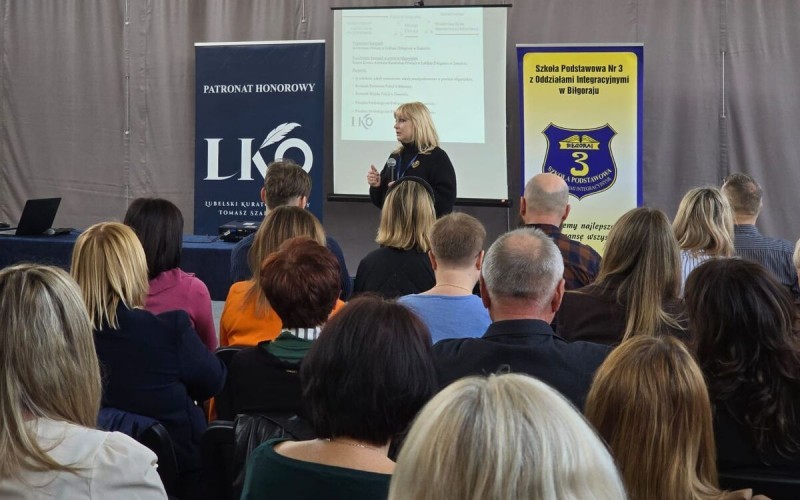Następnie głos zabrała asp. Joanna Pilarska z Zespołu do spraw Profilaktyki Społecznej Nieletnich i Patologii, która przygotowała tematyczną prezentację oraz krótki film instruktażowy. Rolą policjantów w kampanii będzie również prowadzenie zajęć w szkołach na terenie Biłgoraja i powiatu biłgorajskiego.